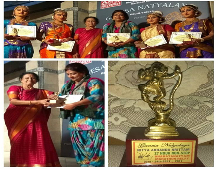 In the NITYA AKHANDA NRITTAM from 23rd September 2017,10:00am to 24th september 2017,1:00pm (27 hours non-stop Bharatanatyam Marathon Relay) performing Bharatanatyam